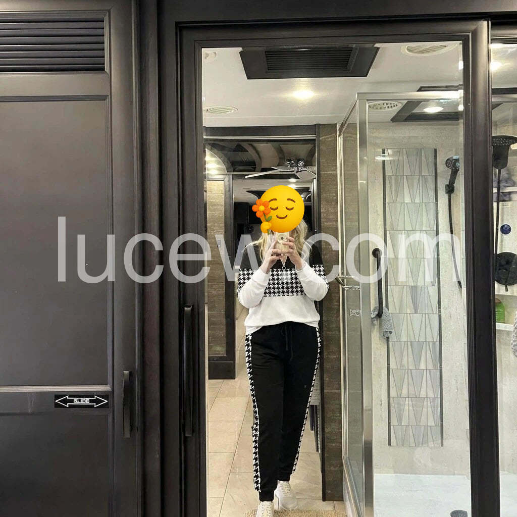 This elegant two-piece set features a unique houndstooth print for a sophisticated touch. With long sleeves, it is perfect for cooler weather and adds a touch of elegance to any outfit. Made with quality materials for a comfortable fit and lasting appeal.