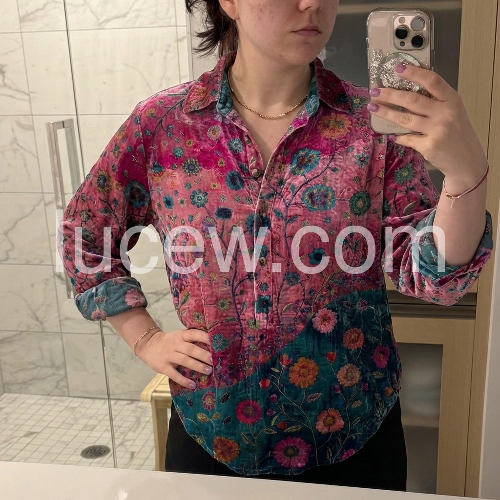 Beautiful shirt! It has a really lovely subtle sheen to the fabric that makes it look much more expensive than it is. The contrasting floral design really pops. Highly recommend if you want to add some color to your wardrobe.