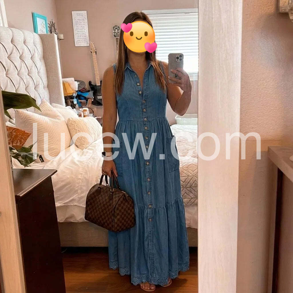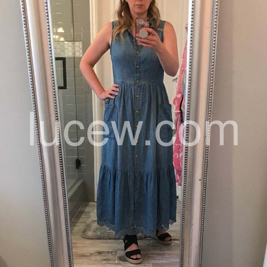 This maxi dress is stunning. The lace detail at the bottom hem adds such a nice feminine touch to the casual chambray style. I wore it on my beach vacation and got so many compliments.