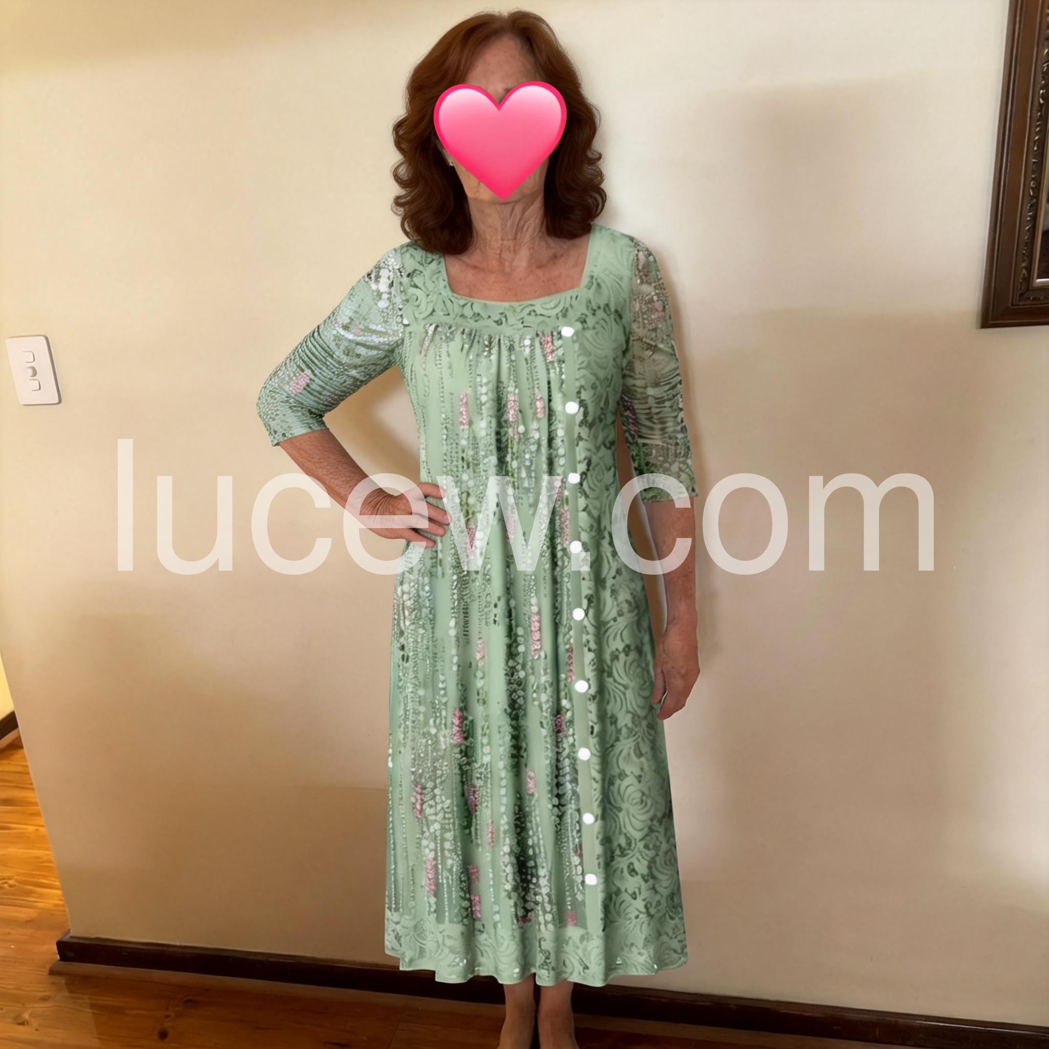 Style# 1372212Imagine effortless elegance that turns heads at every glance. This fresh green midi dress captures modern sophistication with its architectural square neckline that frames the collarbone beautifully, paired with graceful long sleeves for refined polish. The A-line silhouette flows with understated grace, while the luxurious rayon-elastane blend moves like silk against your skin—stretchy enough for all-day comfort, yet structured enough to maintain its impeccable shape. Practical side pockets add a touch of everyday luxury, while the midi length strikes the perfect balance between timeless and contemporary. Whether you're navigating the office, attending weekend brunches, or stepping into evening plans, this dress adapts seamlessly to your lifestyle. Machine washable for effortless care. Discover the dress that makes you feel as good as you look.