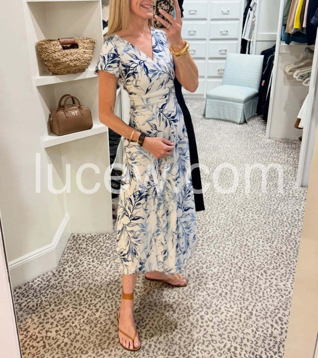 Such a beautiful summer dress. The V-neck is elegant and not too deep, so I felt comfortable wearing it to a family brunch. I paired it with some wedges and received so many compliments.