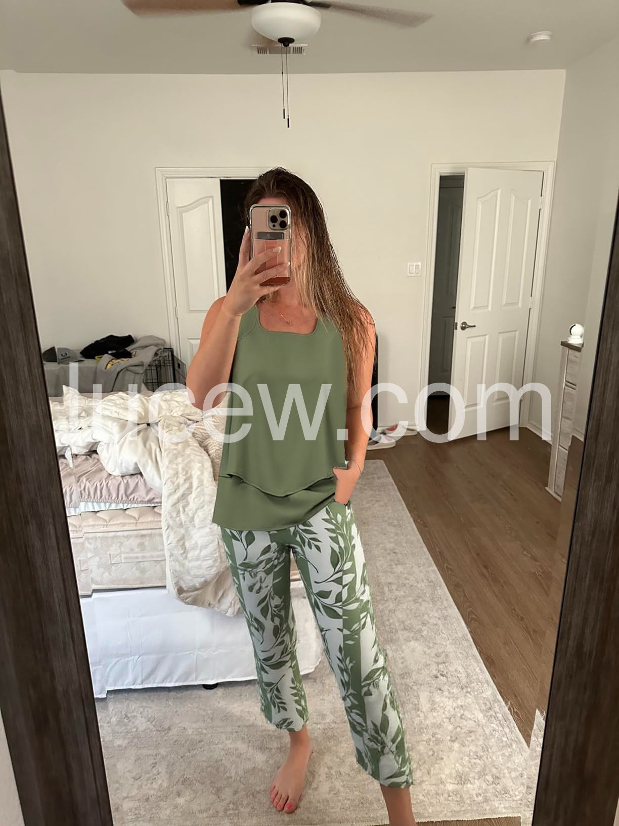 Absolutely love this two piece set! I bought it for my trip to Hawaii and it was perfect. The material is so lightweight and breathable. The wide leg pants are incredibly comfortable and the leaf print is super cute for summer.