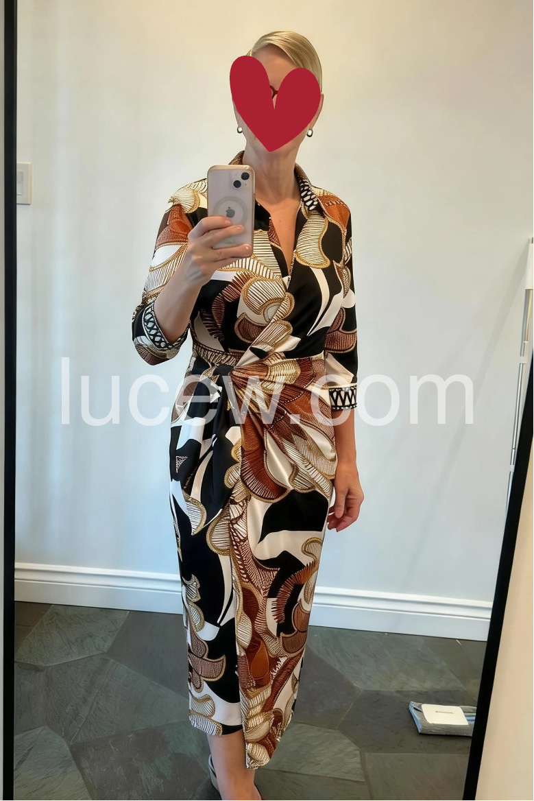 This dress is a winner. The print is eye-catching and the fit is incredibly slimming. I love the collar detail, it adds a touch of class. It washed well on a delicate cycle and hung to dry with no issues. Very happy with this purchase!