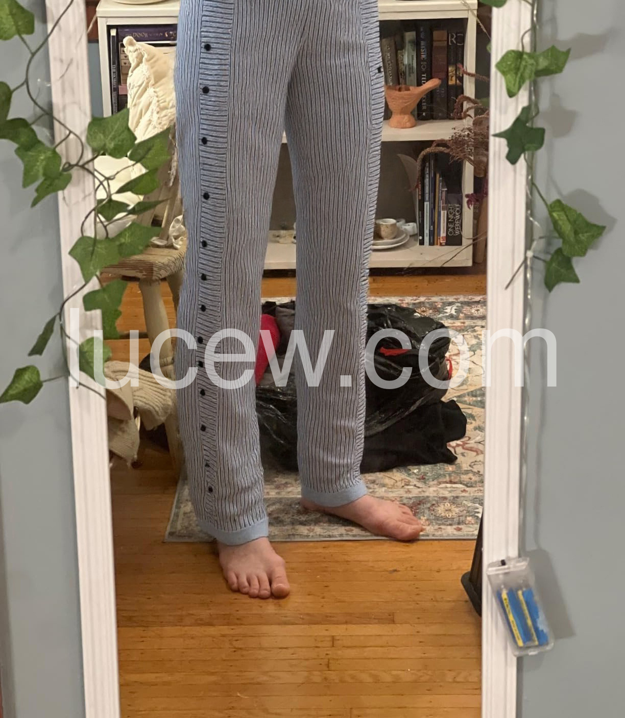 Effortless elegance meets everyday practicality in these striped blue pants that transition seamlessly from casual weekends to polished weekday moments. The elastic waistband hugs your silhouette with gentle comfort, while the luxurious rayon-elastane blend—55% rayon, 45% elastane—drapes beautifully and moves with you. Functional side pockets keep your essentials within reach without compromising the sleek silhouette. Whether you're running errands or meeting friends for brunch, these versatile pants deliver that coveted "put-together" feeling with zero effort. Machine washable for easy care, they're the wardrobe staple you'll reach for again and again.