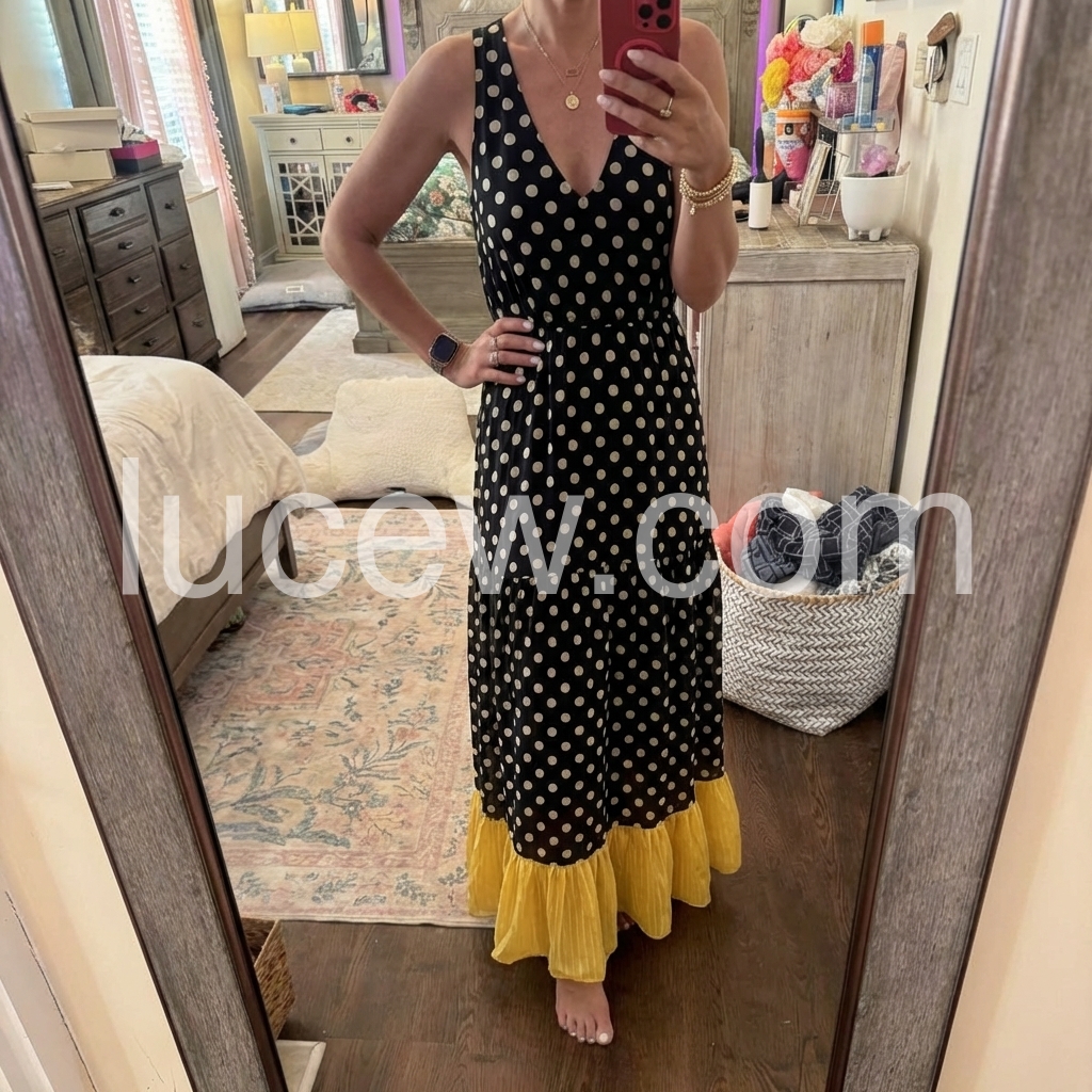 Black Polka Dot Yellow Ruffle Maxi Dress