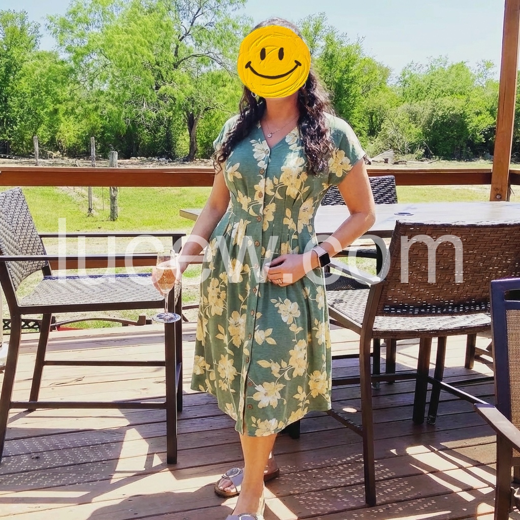 Perfect summer dress. The material is lightweight and breathable, which is exactly what I need for the hot weather. The button-down detail adds a nice touch without gaping.