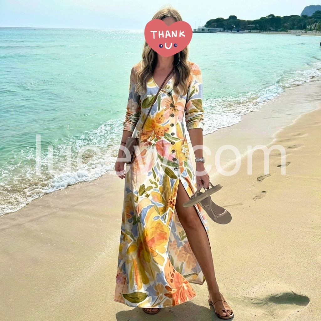 Watercolor Floral Button Front Maxi Dress