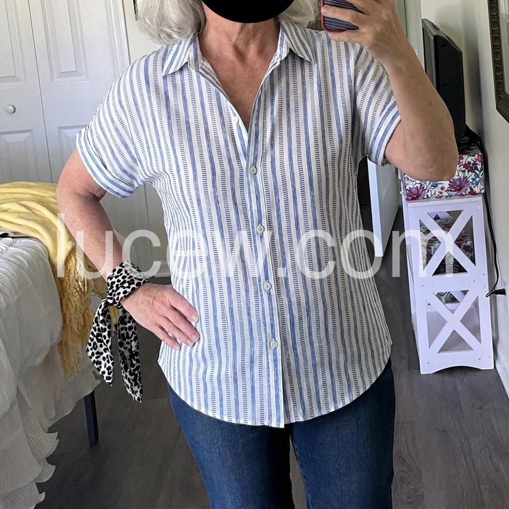 This blue and white striped shirt is a wardrobe staple! The classic print is timeless, and the oversized fit is so on-trend.
