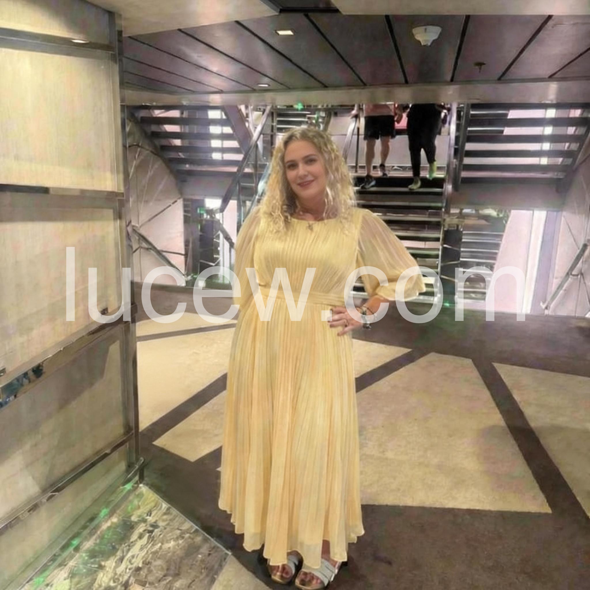 I was worried the yellow might wash me out, but it is such a soft, buttery shade that it actually looks incredibly elegant. Paired it with gold heels and a clutch just like the model, and it was a total hit at the charity gala I attended. Fits true to size.