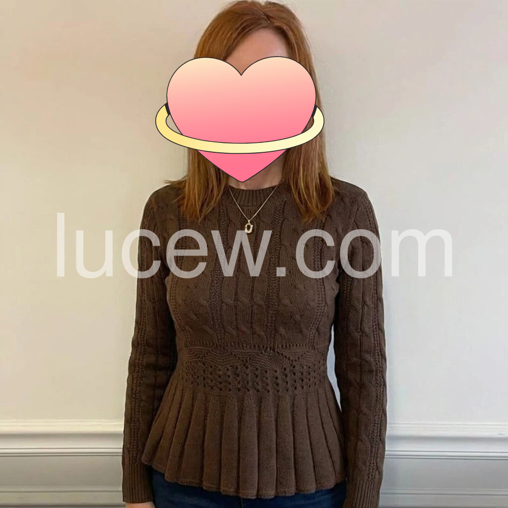 Coffee Long Sleeve Cable Knit Peplum Sweater