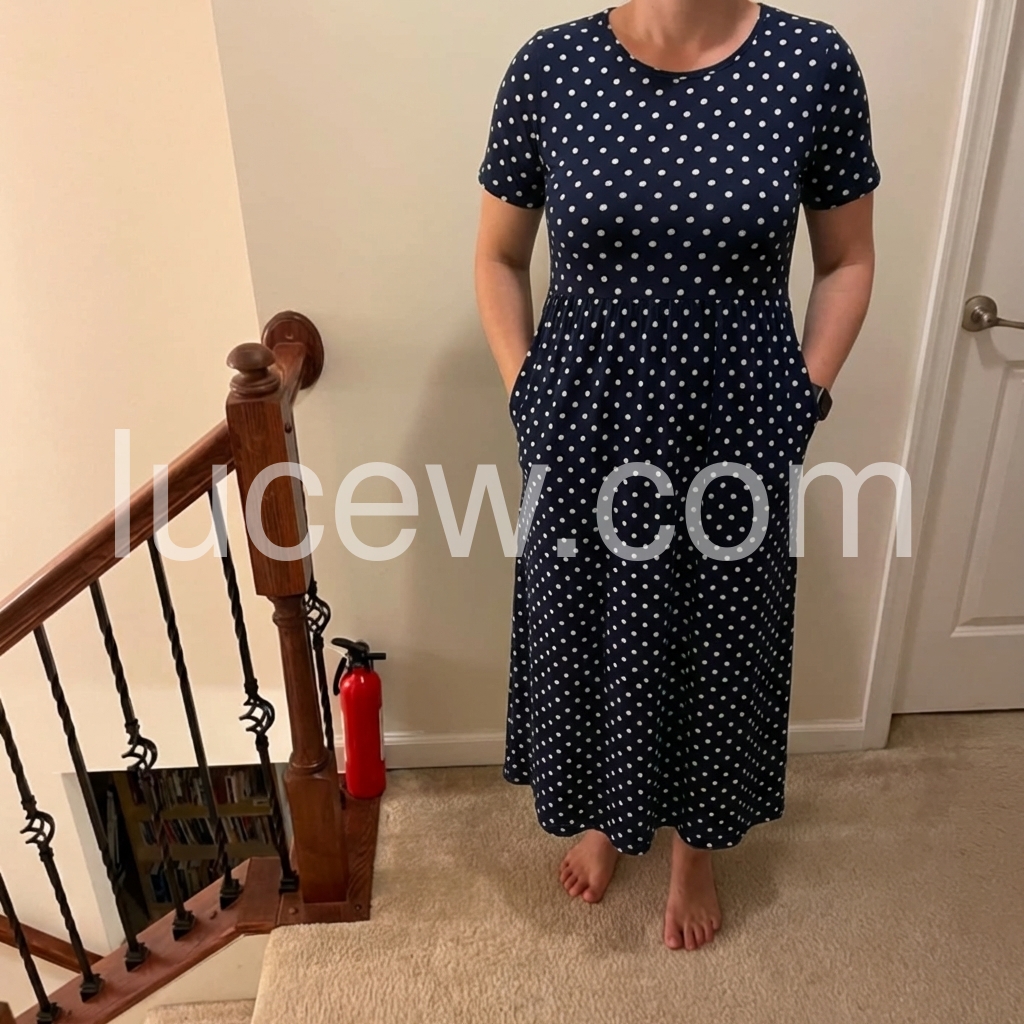 Wore this out to a weekend brunch and got so many compliments. The polka dot print is classic and never goes out of style. The fact that I can slip my phone into the deep pocket makes it a 10 out of 10.