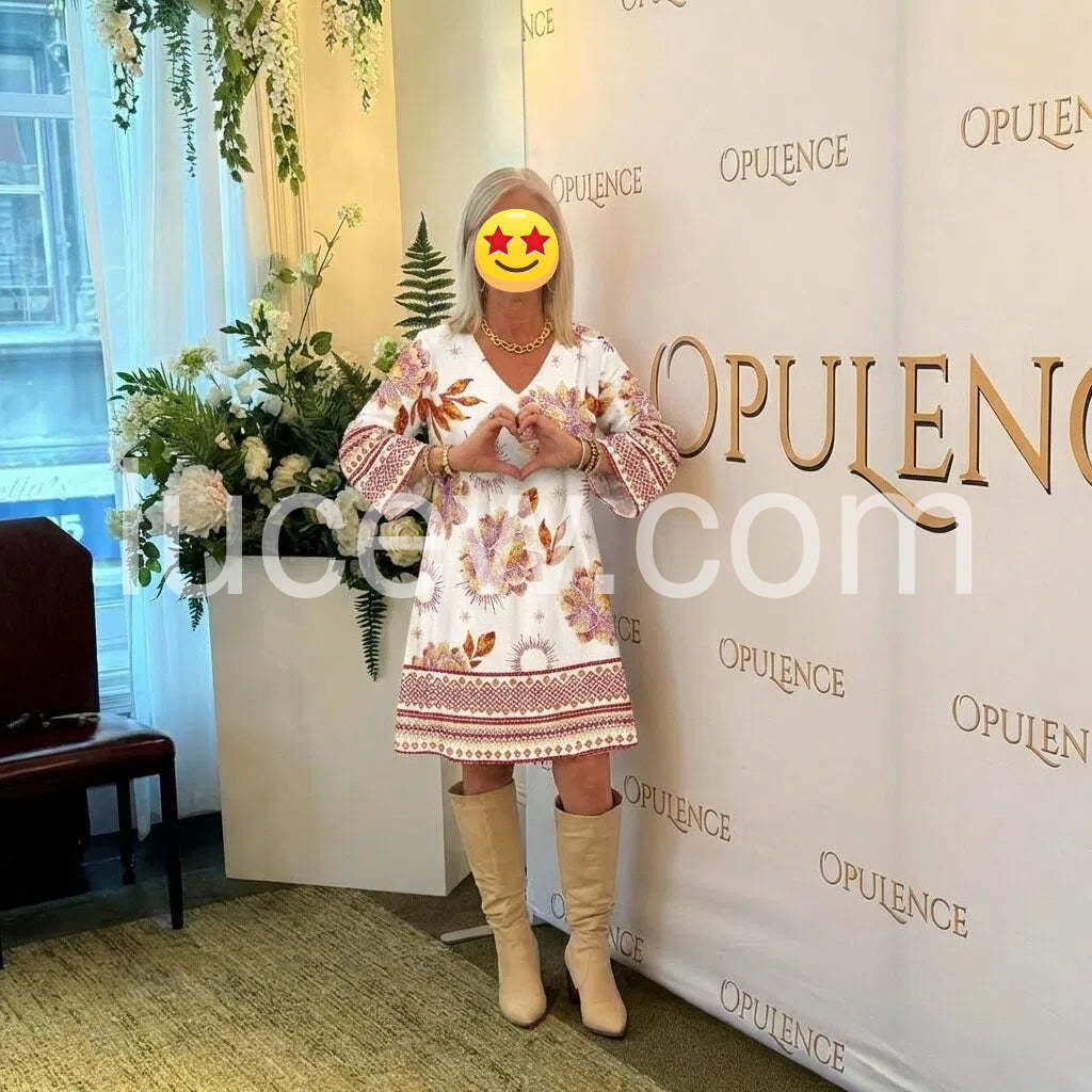 Unique Floral Print Long Sleeve Mini Dress