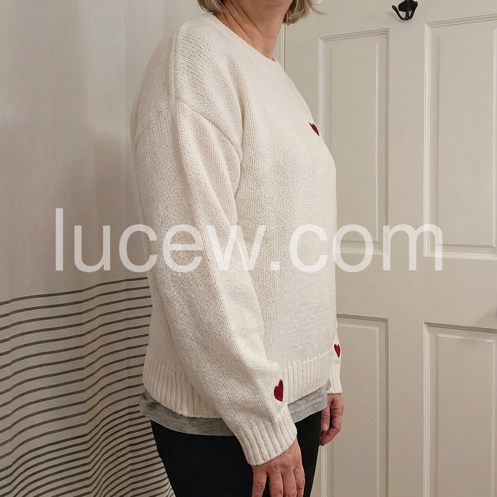 I got my normal size Xlarge (5'9 190lb, size 12/14) and it fits well. The sweater is a heavy knit and the sleeves have a different pattern and a bit lighter in the knit. It soft on the skin and not itchy, and it fits well and comfy to wear. It will most likely be a piece that I grab often.