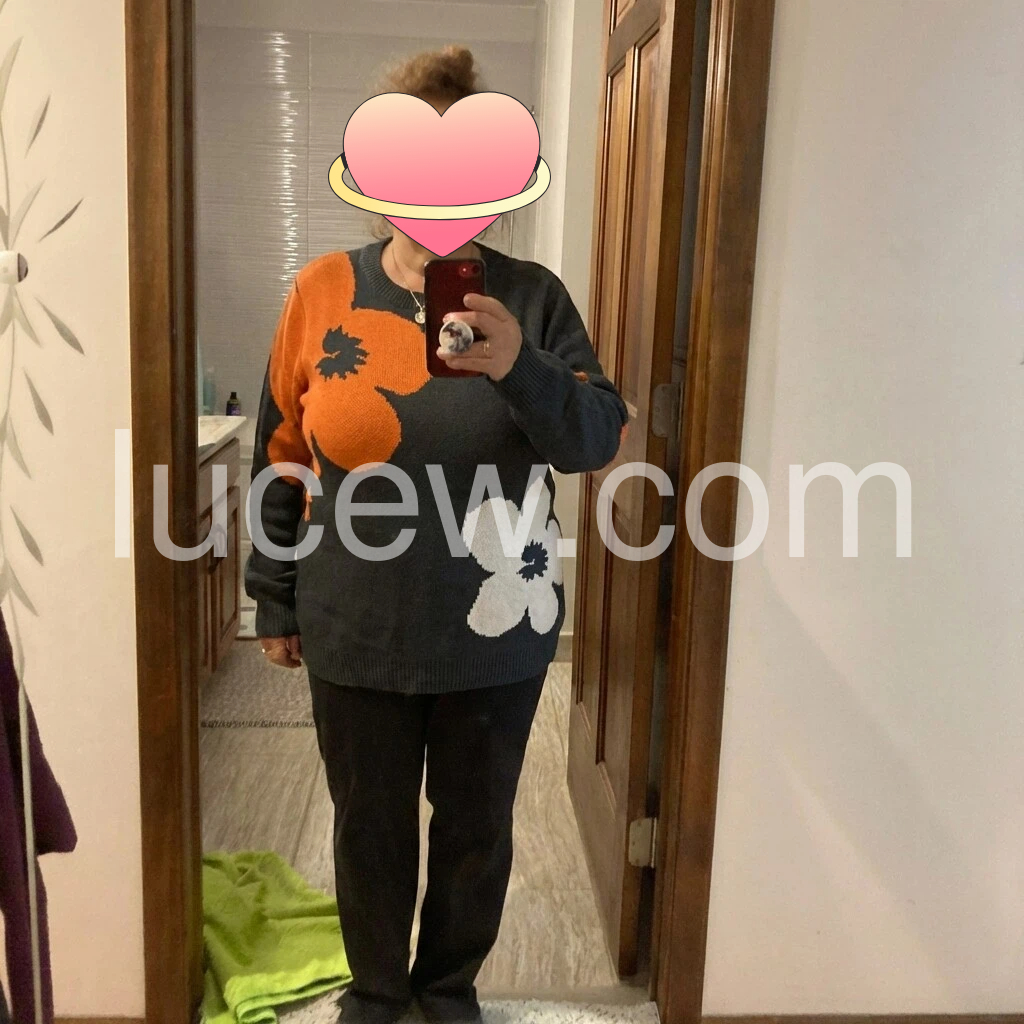 I love this sweater! The colors are fun and festive especially the bright orange animal design against the dark background. The knit looks soft and comfortable, and it fits nicely without feeling stiff. The crew neck sits well and the length is flattering. I’ve worn it casually and it still looks really put-together because the print is so eye-catching. It matches the listing photos well and feels like good quality.