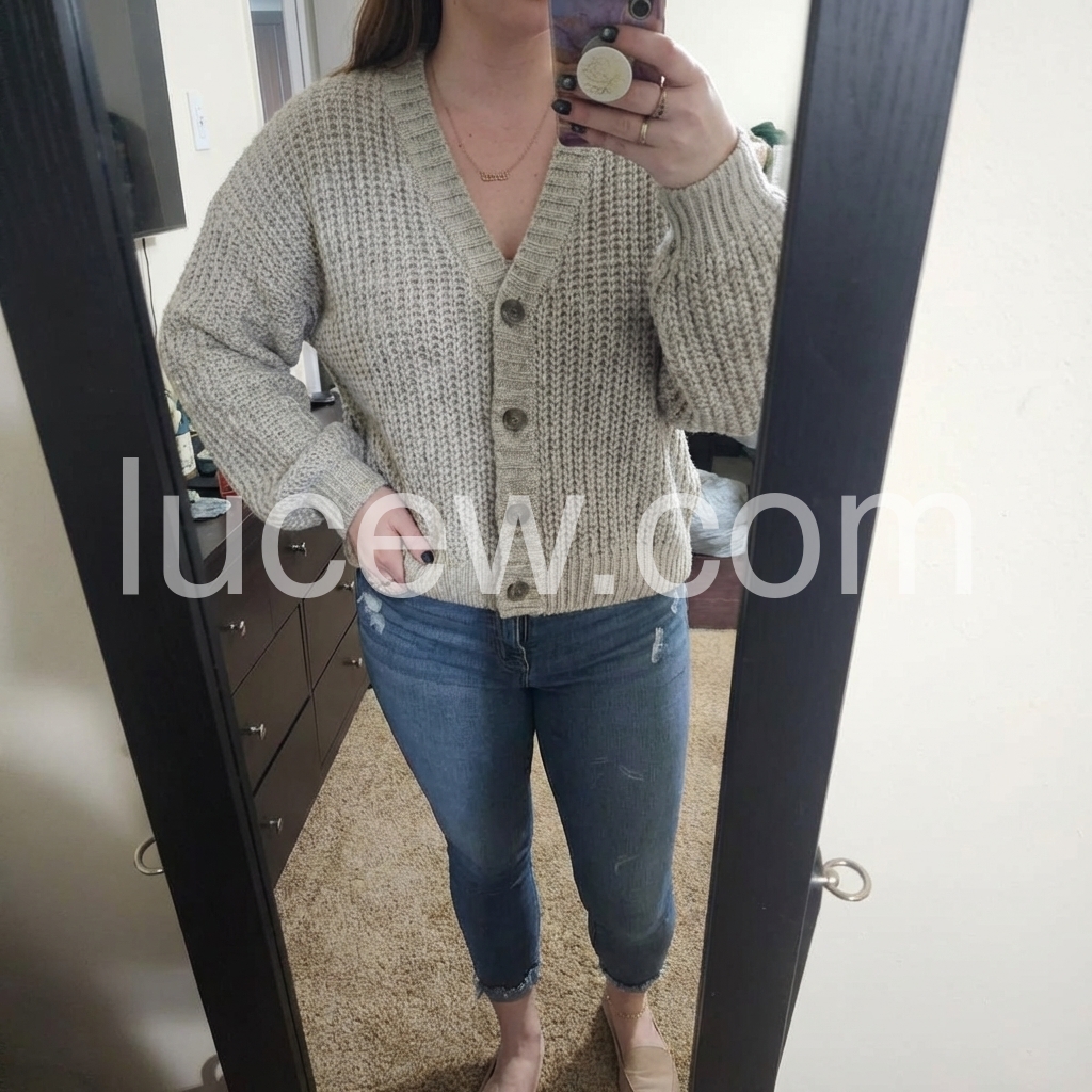 This grey plain v-neck long sleeve sweater is a must-have addition to any wardrobe. Made with high-quality materials, it is comfortable and versatile, making it perfect for both casual and professional settings. Its classic design and neutral color make it a timeless piece that will continue to be a staple in your wardrobe for years to come.