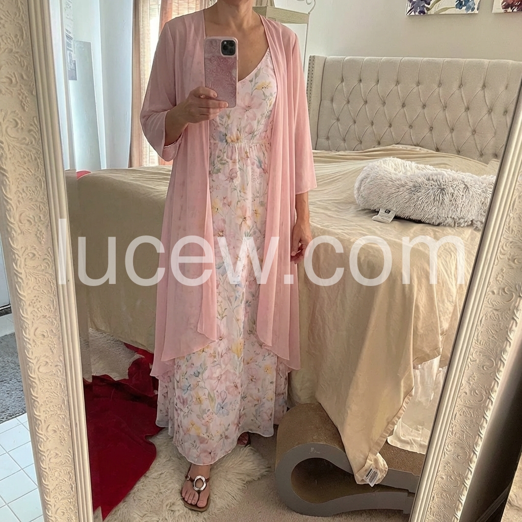 Pink Floral Dress Chiffon Cardigan Two Piece Set