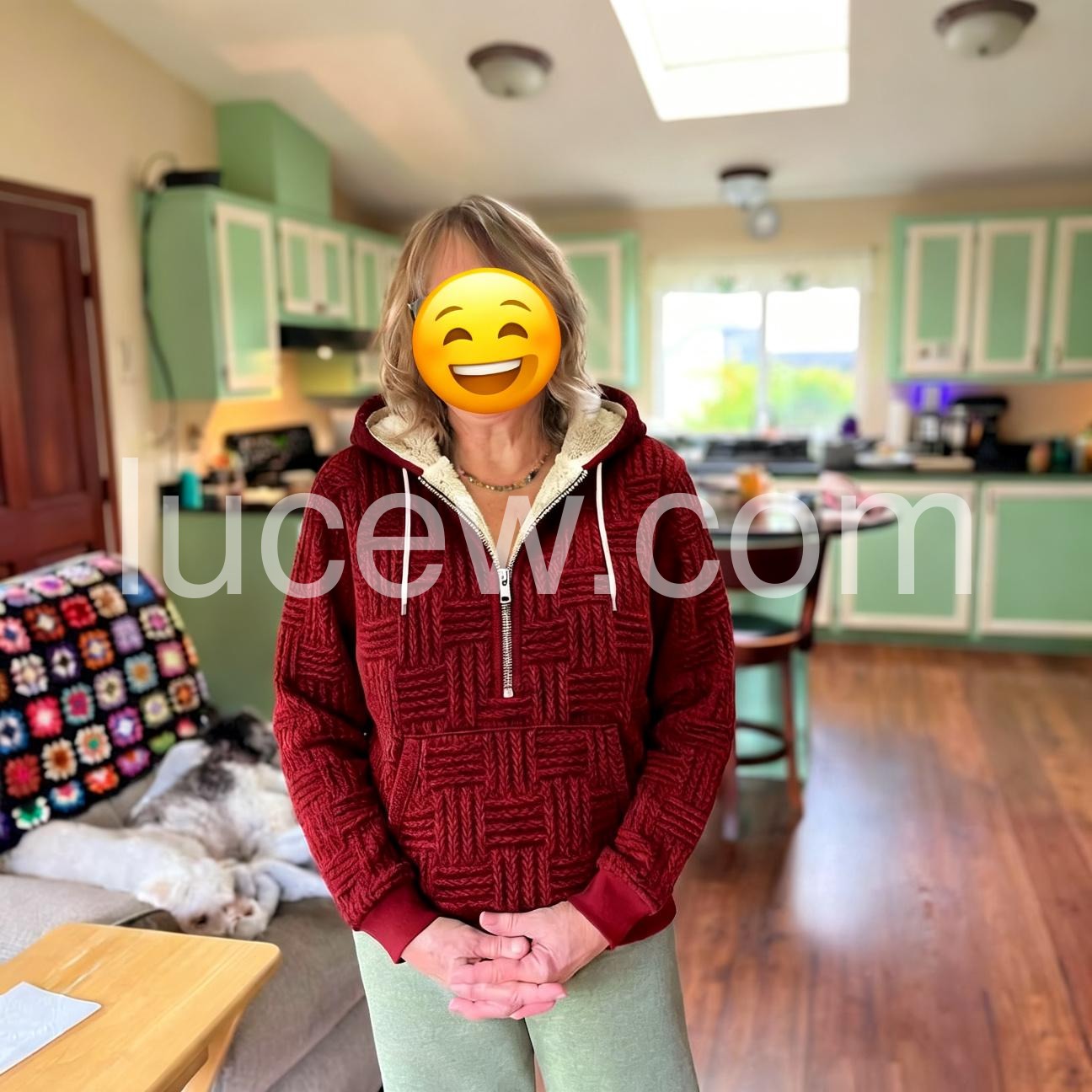 Stay warm and comfortable with this red long sleeve hooded sweater, engineered with a soft fleece lining for superior insulation. The spacious hood provides extra coverage during unpredictable weather, while the relaxed fit allows for easy layering. Perfect for casual outings, outdoor activities, or cozy evenings at home. The durable construction ensures lasting wear through multiple seasons. An essential wardrobe staple that combines functionality with timeless style.