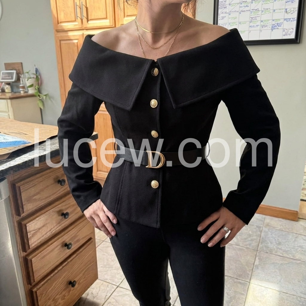 This black plain collared long sleeve outerwear is the perfect addition to any wardrobe. Made with a sleek and versatile design, it can be easily dressed up or down. Stay warm and stylish with this must-have piece.