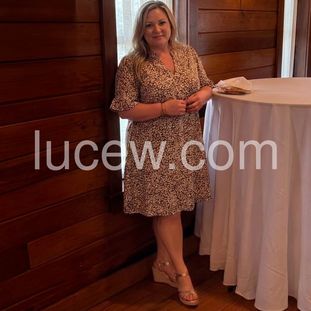 This min-length wrap dress features a soft, abstract floral print in neutral tones. V-neckline with flared short sleeves for a feminine touch. Flowy silhouette perfect for warm weather. Ideal for casual outings or brunch dates. Stylish and effortless elegance.