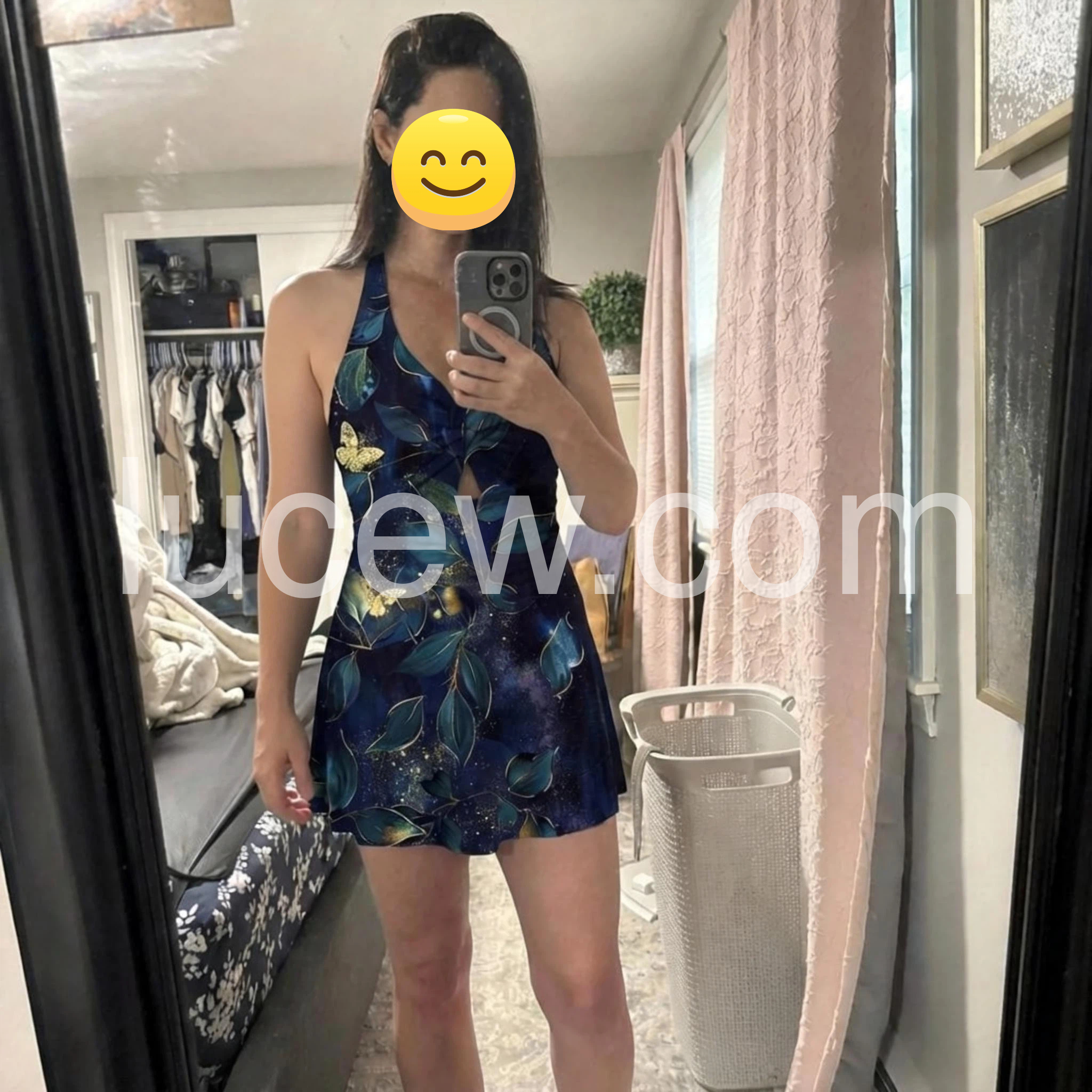 Really pretty swimsuit. Comfortable. Nice coverage. I Love it. It fits just as it should. The color was great, the tummy control was just enough without cutting you in two . Looks really good on and covers the rear end just enough.
