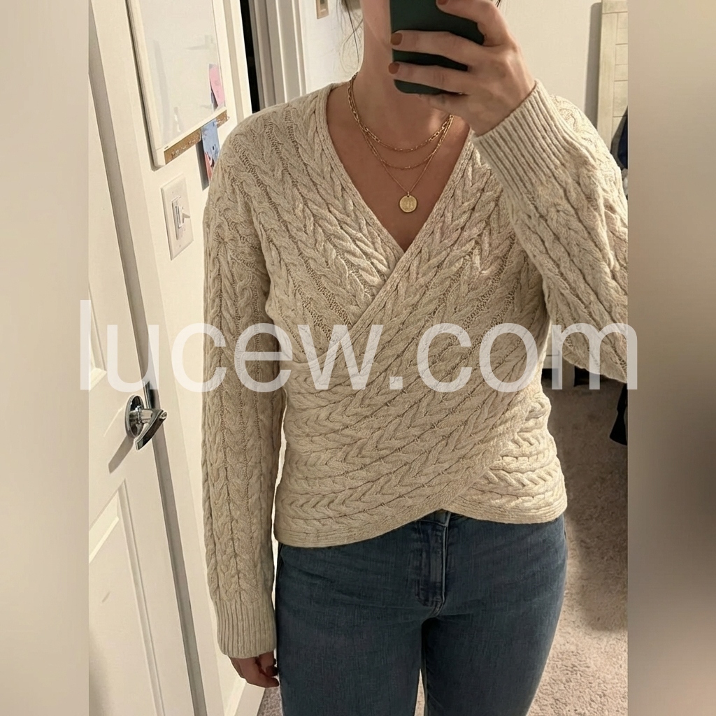 This apricot plain v-neck long sleeve sweater is a versatile addition to any wardrobe. Made with high-quality material, it offers both comfort and style. With its classic v-neck design and long sleeves, it can easily be dressed up or down for any occasion. Stay warm and elegant with this must-have piece.